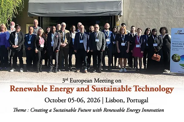 We are delighted to announce the 3rd European Meeting on Renewable Energy and Sustainable Technology, taking place from October 05-06, 2026 in Lisbon, Portugal. We eagerly look forward to welcoming participants from across the globe. Be a part of our insightful audience and branch your network with our cordially invited speakers and delegates holding renowned positions in their respective institutions and firms.